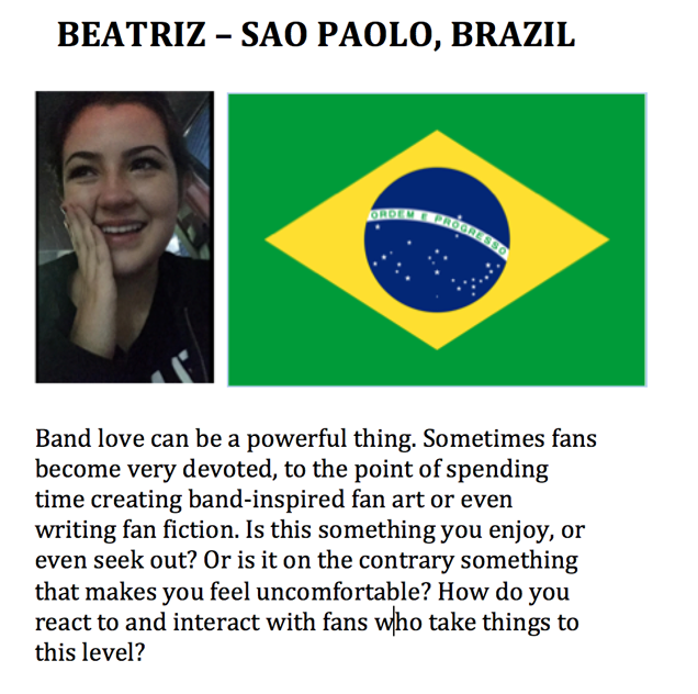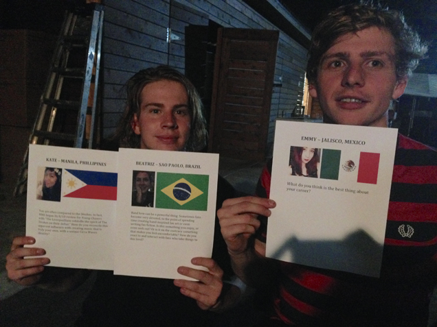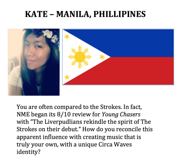 Special thanks to Kate in the Philippines @PARAFFIN, Beatriz in Brazil @imhispacifier, and Emmy in Mexico @naivemily for contributing excellent questions from afar.